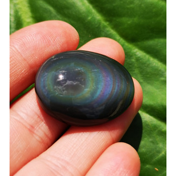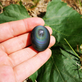 cabochon Obsidienne oeil céleste (arco iris) Provenance : Mexique (ramenée de voyage) Taille réalisée en France 2.9 x 2.3 x 0.7 cm