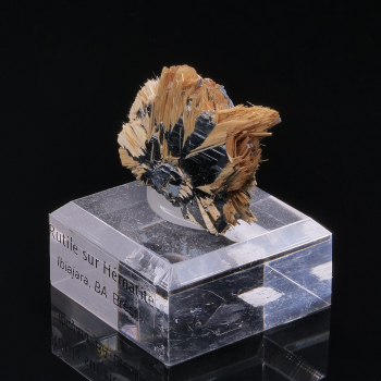 Très beau spécimen de Rutile sur Hématite sur Quartz. Les cristaux en épitaxie de Rutile forment comme un soleil autour des Hématite. Cristaux de belle taille.7,90 x 5,20 x 3,10 cmRéférence : 2942