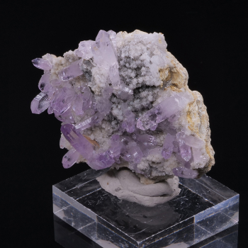 Plaque avec de nombreux cristaux d’Améthyste violet pastel, bien formés et lustrés, provenant de la célèbre localité de Veracruz au Mexique.6,90 x 5,20 x 2,70 cmRéférence : 3195
