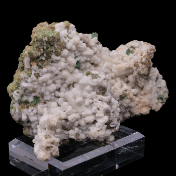 Nombreux cristaux prismatiques de Tarnowitzite blancs sur Malachite et Duftite verts qui offre un beau contraste de couleur à la pièce. Cette variété d’Aragonite contient plus de 3% de plomb pour les cristaux trouvés dans la mine de Tsumeb en Namibie.12 x 9,10 x 7,50 cmRéférence : 2970