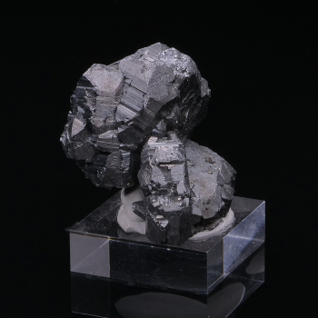 Magnifique spécimen présentant trois cristaux de Bournonite imbriqués les uns dans les autres. Les cristaux ont une couleur gris métallique et sont très bien formés.4,60 x 3 x 3,70 cmRéférence : 2983
