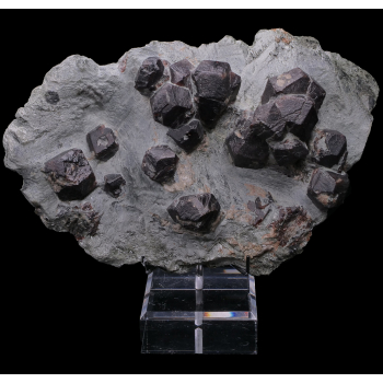 Le Zillertal en Autriche est l’un des célèbres dépôts de micaschistes à Almandin qui a donné de très grands cristaux bien formés. Ici nous avons un spécimen avec de nombreux Grenat Almandin sur matrice de Micaschiste de cette provenance. Les cristaux ne sont pas surfacés.16,90 x 10,40 x 6...