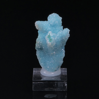 Superbe spécimen ayant subi deux phases de remplacement : l’Azurite a été remplacé par la Malachite, puis la Malachite par le Chrysocolle. La surface est incrustée de cristaux incolores de Quartz qui offrent une brillance inouïe à la pièce.3,70 x 2,90 x 2,20 cmRéférence : 3019