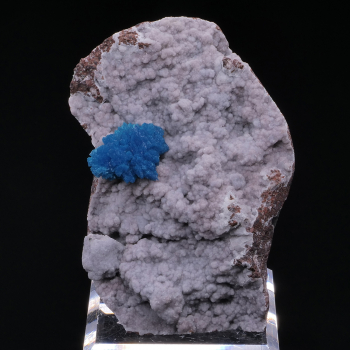 Superbe spécimen ayant subi deux phases de remplacement : l’Azurite a été remplacé par la Malachite, puis la Malachite par le Chrysocolle. La surface est incrustée de cristaux incolores de Quartz qui offrent une brillance inouïe à la pièce.4,60 x 3,50 x 2,30 cmRéférence : 3063