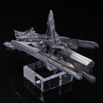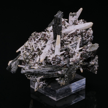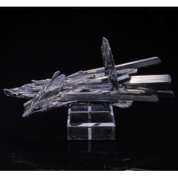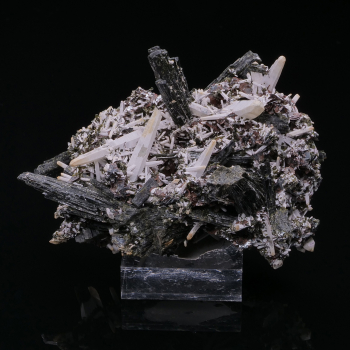 Esthétique et aérien spécimen de Stibine noir intense et brillant provenant de Chine. La plupart des cristaux sont terminés et ou biterminés.17,20 x 7,60 x 5,60 cmRéférence : 2849