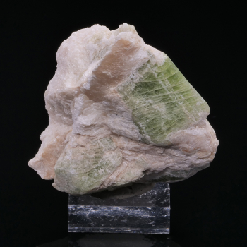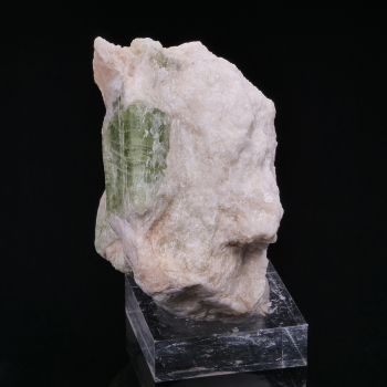 La Trémolite fait partie de la famille des Amphibole et est riche en magnésium. La teneur en fer fait varier la couleur verte, comme sur ce spécimen. Les cristaux de Trémolite vert sont les plus appréciés. Celui-ci sont en plus sur gangue.6,30 x 5,60 x 3,70 cmRéférence : 2863