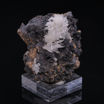 Très belle pièce d’Aragonite en forme d’Oursin avec la Calcite en sphérules sur gangue noire qui offre un beau contraste de couleur.5,90 x 4,90 x 3,80 cmRéférence : 2867