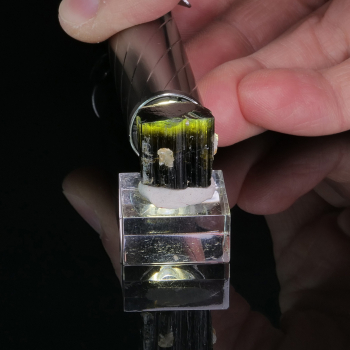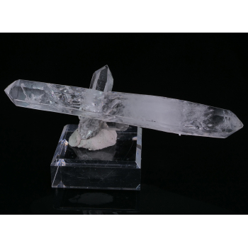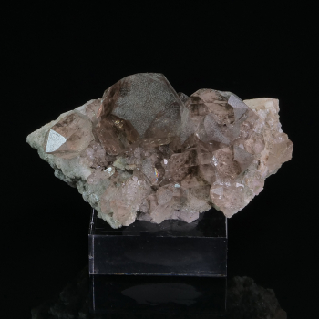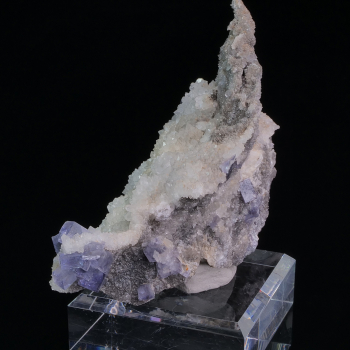 Grappe de cubes de Fluorite violets sur la pointe de la pièce, avec deux cubes au centre, sur matrice de Quartz. Spécimen provenant de la mine La Viesca en Espagne.11,70 8 x 4,50 cmRéférence : 2759