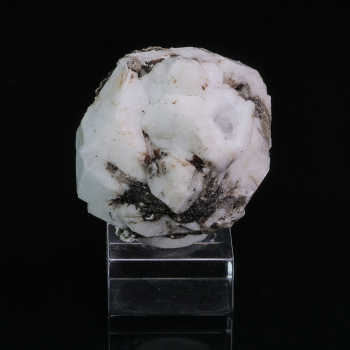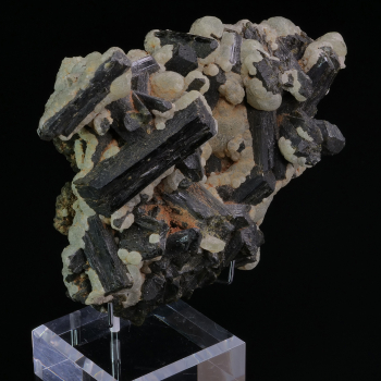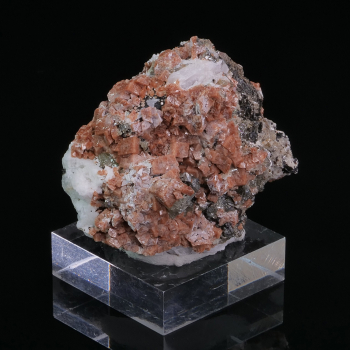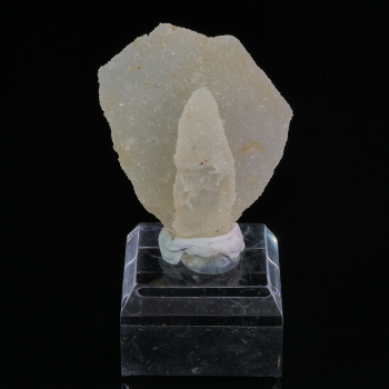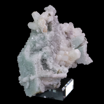 Difficile de voir toute la complexité de cette pièce sur photo car elle forme un arrondi vers l’arrière. Nous avons de la Fluorite verte couverte de Quartz et de Calcite en colonne bien formées. Spécimen de la Mine El Hammam au Maroc.18 x 12,30 x 11 cmRéférence : 2800