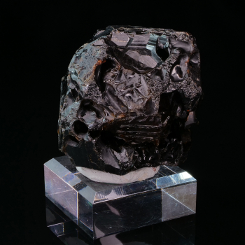 Cristaux en sifflet de Calcite lustrée et trapus avec inclusions noires à l’intérieur, sûrement de la Boulangérite typique du gisement. Les cristaux de Calcite gris noir sont présents partout, plus gros sur l’avant et plus petits sur l’arrière. Spécimen provenant de la mine Herja en Roumanie.8,60...