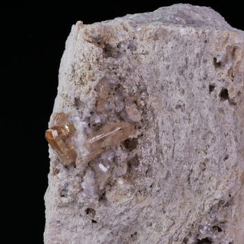 Cristal terminé de Topaze couleur cognac sur gangue de Rhyolite provenant de la célèbre localité de Thomas Range aux Etats-Unis.7,50 x 5,40 x 5,50 cmRéférence : 2544