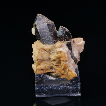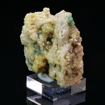 Grand groupe de cristaux prismatiques de Vésuvianite jaune et vert de la célèbre Jeffrey Mine au Canada. Les cristaux présentent une belle couleur et sont bien formés.5,40 x 5,40 x 2,30 cmRéférence : 2285
