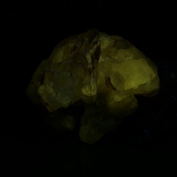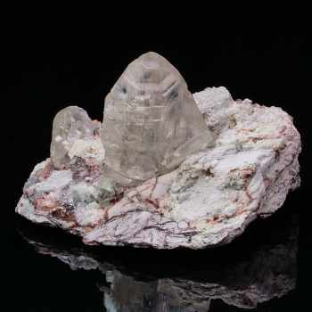 Cristaux de Calcite translucides blanc de Daye en Chine. Belle réaction aux UV, les cristaux deviennent rose foncé voir rouge.7,20 x 5,20 x 3,80 cmRéférence : 2225