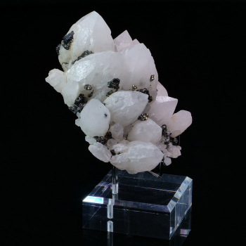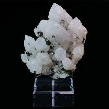 Quartz trapus également appelé Quartz artichaut de par leur forme, très bien formés, associés à des cristaux de Galène et de Chalcopyrite qui apportent de la brillance au spécimen.9,40 x 8,80 x 4,70 cmRéférence : 2191