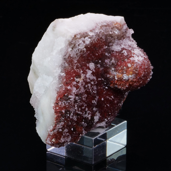 Quartz rouge couvert en partie par des cristaux de Calcite blanche. Spécimen provenant de l’Argentolle dans Le Morvan.4,60 x 3,90 x 3,10 cmRéférence : 2375