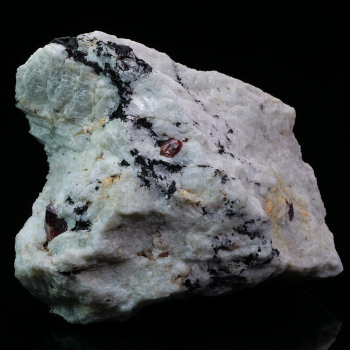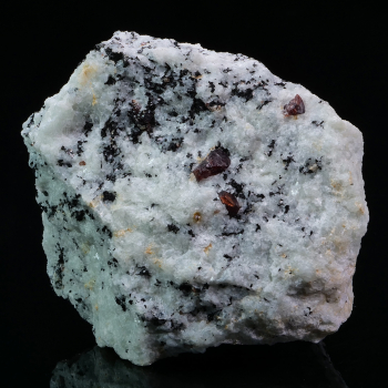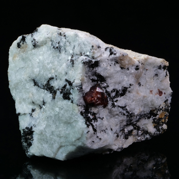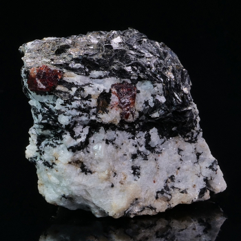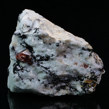 Cristaux de Zircon orange rouge brique sur gangue de Marbre blanc et Biotite noire. Joli contraste de couleur pour ce spécimen typique de sa localité d’Astore au Pakistan.5,10 x 4,50 x 4,80 cmRéférence : 2106