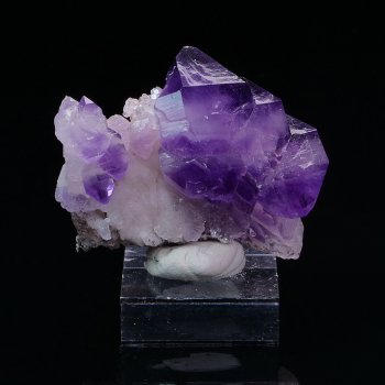 Superbe spécimen d’Améthyste du Kazakhstan avec une partie des cristaux recouverts de Calcite. Beau contraste de couleurs.6,20 x 4,30 x 2,30 cmRéférence : 1944