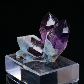 Superbe qualité pour ces Améthyste violette foncé intense biterminées sur gangue qui contraste fortement. Spécimen provenant du Kazakhstan.5,50 x 4,30 x 2,60 cmRéférence : 1931