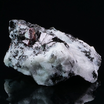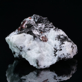 Cristaux de Zircon orange rouge brique sur gangue de Marbre blanc et Biotite noire. Joli contraste de couleur pour ce spécimen typique de sa localité d’Astore au Pakistan.6 x 5,50 x 2,90 cmRéférence : 2161