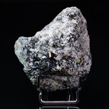 Cristaux de Zircon orange rouge brique sur gangue de Marbre blanc et Biotite noire. Joli contraste de couleur pour ce spécimen typique de sa localité d’Astore au Pakistan.8,80 x 8,40 x 3,80 cmRéférence : 2163