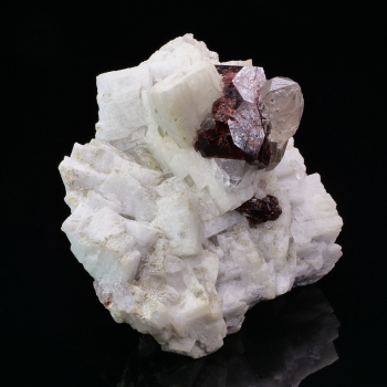 Spessartine de belle taille traversé par des cristaux de Quartz, le tout sur Albite blanche qui contraste avec le orange-rouge du Grenat.11,50 x 9,80 x 6,80 cmRéférence : 1958