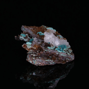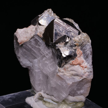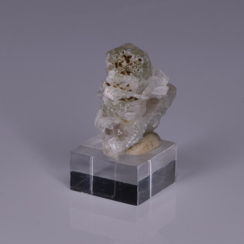 Spécimen provenant d’une des localité les plus célèbres au Monde : la Mine de Tsumeb en Namibie. Cette pièce présente des cristaux de Calcite rhomboèdres avec inclusions de Dioptase qui leur donnent cette couleur vert pomme. Spécimen très intéressant et très grande taille. 18,35 x 14,70 x 4,90...