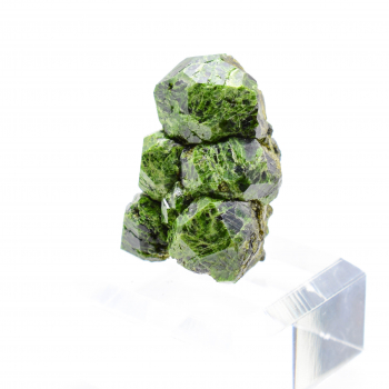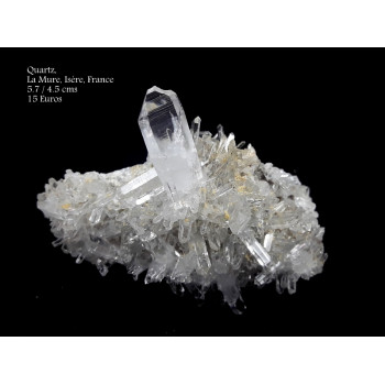 Enchevêtrement de quartz à fantôme chloriteux, brillants, sans choc, du Grand Châtelard en Savoie. L'un d'entre eux présente l'habitus du Dauphiné. 5 x 1,5 x 1,5 cm. Référence : 2373-LM2T