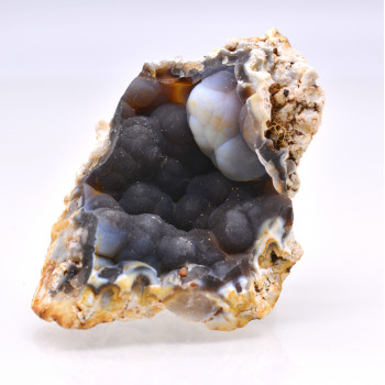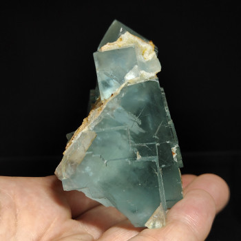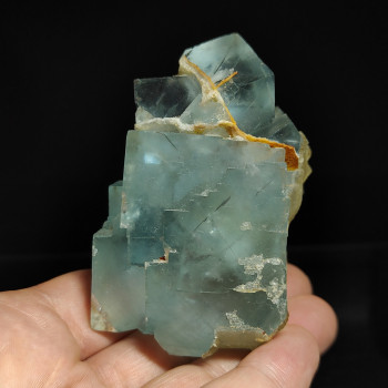 Superbe pièce de la mine du Beix. Le cube principal mesure 5.3cm. Sa stucture étagée et en escalier est intéressante. La couleur bleu ciel est trés agréable. 3 autres cubes sont posés sur le cube principal tout en étant séparés par des lames de quartz. Cette structure de lame de quartz...