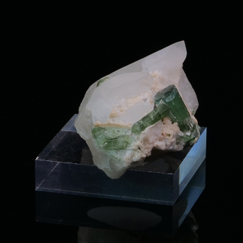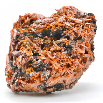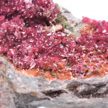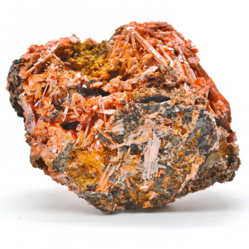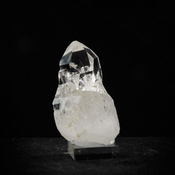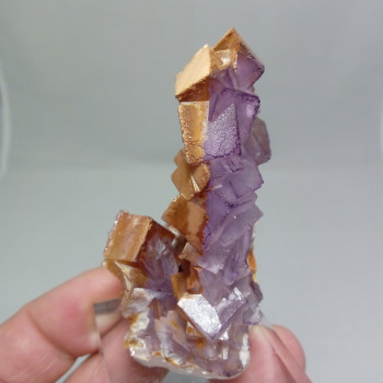 Stalactite de Fluorite mauve avec un surlignage violet sous les arêtes. L'arrière de la pièce est partiellement recouvert de calcite blanche, et d'un voile d'oxyde de fer.7 x 3,5 x 3 cmRéférence : 0094