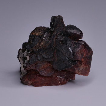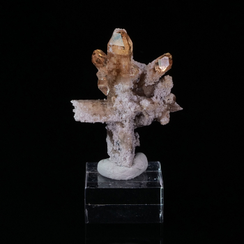 Très beau groupe de quartz , une des faces des cristaux est recouverte d'une croute de calcite rose15 x 10 x 7 cmRéférence : 0066