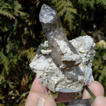 Petite prehnite en casque avec adulaire blanc et épidote verte.5 x 4 x 3,5 cmRéférence : 0225