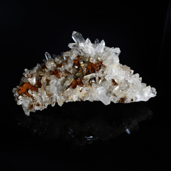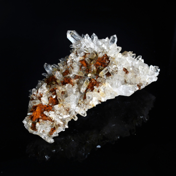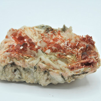 Bel ensemble de vanadinite rouge orangé translucide et brillante sur lamelles de baryte blanche.7 x 4,5 x 3 cmRéférence : 0318