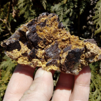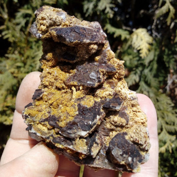 Cristaux tabulaires recouverts partiellement de Wad et d'une deuxième génération de Baryte jaunâtre.10,5 x 6 x 4 cmRéférence : 0176