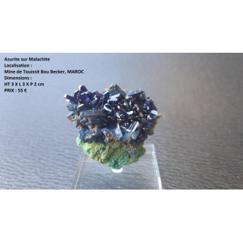 Touissit ! Un gisement formidable ayant donné ces magnifiques Azurites d'une qualité exceptionnelle ! ces pièces que je vous présente ici sont issues d'un ancien stock et ont été trouvées il y à une bonne trentaine d'années. Elles se font aujourd'hui assez rare et sont souvent à des prix très...