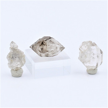 Lot de 3 Quartz type Herkimer, Saint-Jean-de-Valériscule, Gard(30), France. 1,2 x 1,0 x 0,9 cm / 2,0 x 1,2 x 1,0 cm / 1,2 x 1,3 x 0,8 cm.