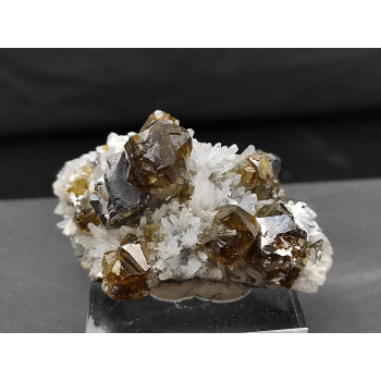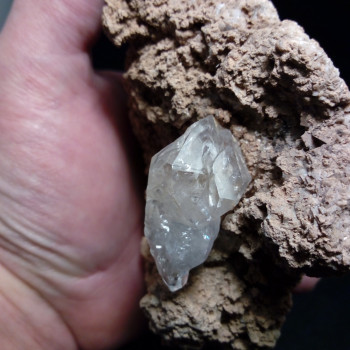 Cristaux de Quartz bitérminés sur gangue de Calcite et Dolomite. Le plus gros fait 40 x 25 mm, il a une grosse fenetre sur un coté. Pièce ancienne, très rare sur gangue !11,5 x 9,5 x 4 cmRéférence : 0084