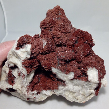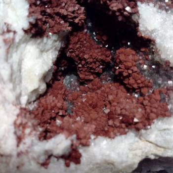Trois types de Quartz sur la même pièce : hématoïde brillant, hématoïde satiné et a inclusion d'Hématite. Jolie contraste avec la gangue de quartzite !19 x 15 x 10 cmRéférence : 0123