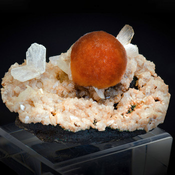 Très belle thomsonite orange foncée présentant en surface une micro cristallisation en aiguille, associée à des cristaux de stilbite blancs et brillants reposant sur une matrice de petites stilbites .Spécimen très esthétique.8 x 6 cmRéférence : 0214