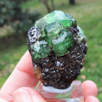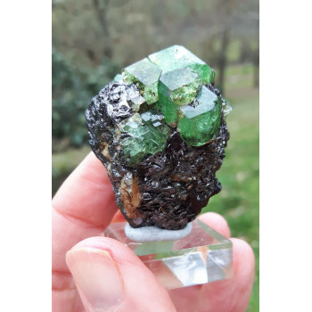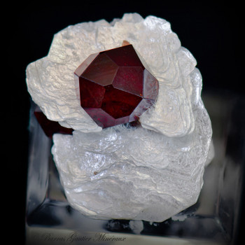 Une perfection cristallographique remarquable pour ce grenat, avec une très belle couleur et une belle luminosité , le mica renvoyant la lumière à l'intérieur du cristal.1.9 x 1.6 cmRéférence : 0186