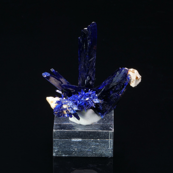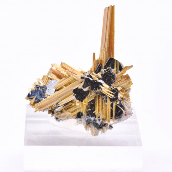 Etonnant montage de Calcite sur Baryte. Scalénoèdre de Calcite maclé, recouvert partiellement par un rhomboèdre biterminé, et l’ensemble est incrusté dans des cristaux de Baryte ! 9,5 x 8,5 x 5 cm0044-SMCLS