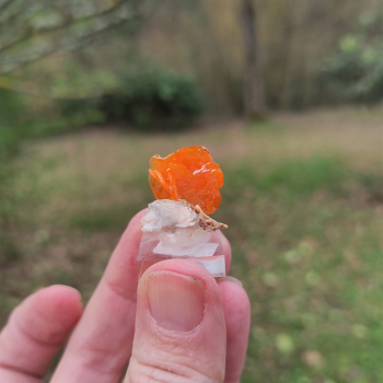 Joli petit spécimen, cristal de wulfénite d'une magnifique couleur orange. 2,2 x 2 cm Référence : 0347-MDSA