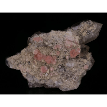 Groupe de pompon associé a des Sphalérites rouges et des micro-quartz.5 x 4 x 3,5 cmRéférence : 0165