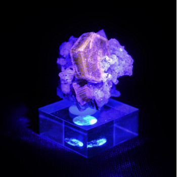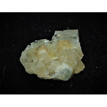 Association peu fréquente, un cristal d’aigue marine est enchassé entre des cristaux de fluorite verte4 x 3 x 2 cmRéférence : 0276