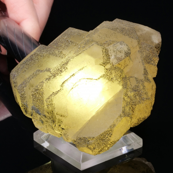Joli bout de Septaria pudding, contenant des Calcites, un Quartz biterminé et de petite fleurs de Quartz dans sa cavitée.6 x7 x 7 cmRéférence : 0570