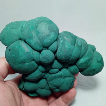 Malachite botryoïdale acrochée a un morceau de gangue (1233 g).12 x 11 x 7 cmRéférence : 0102