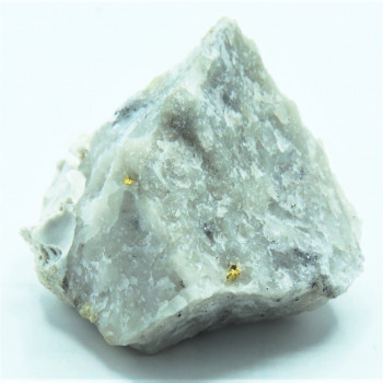 Deux grains d’or natif dans du quartz gris massif.2,1 x 1,9 x 1,9 cmRéférence : 0181