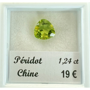 Description : NOM : PERIDOT LOCALITE : CHINE TAILLE : trillion 7 mm POIDS : 1.24 carat RESUME de la pièce :