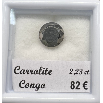 Description : NOM :CARROLITE LOCALITE : CONGO TAILLE : diamètre 7.5 mm POIDS : 2.23 carats Résumé de la pièce : éclat métallique très brillant