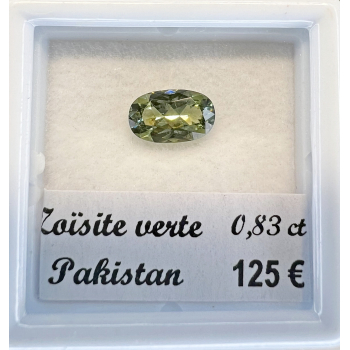 Description : NOM : ZOISITE VERTE LOCALITE : PAKISTAN TAILLE : 7.7 x 4.8 mm POIDS : 0.83 RESUME de la pièce : beaucoup plus rare que la tanzanite de la même famille