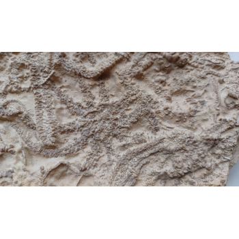 Magnifique plaque de crinoïdes (comatules) Solanocrinites beltremieuxi du kimméridgien de Charente Maritime, France 30x12x5 cm. Référence : 0403-RuFo